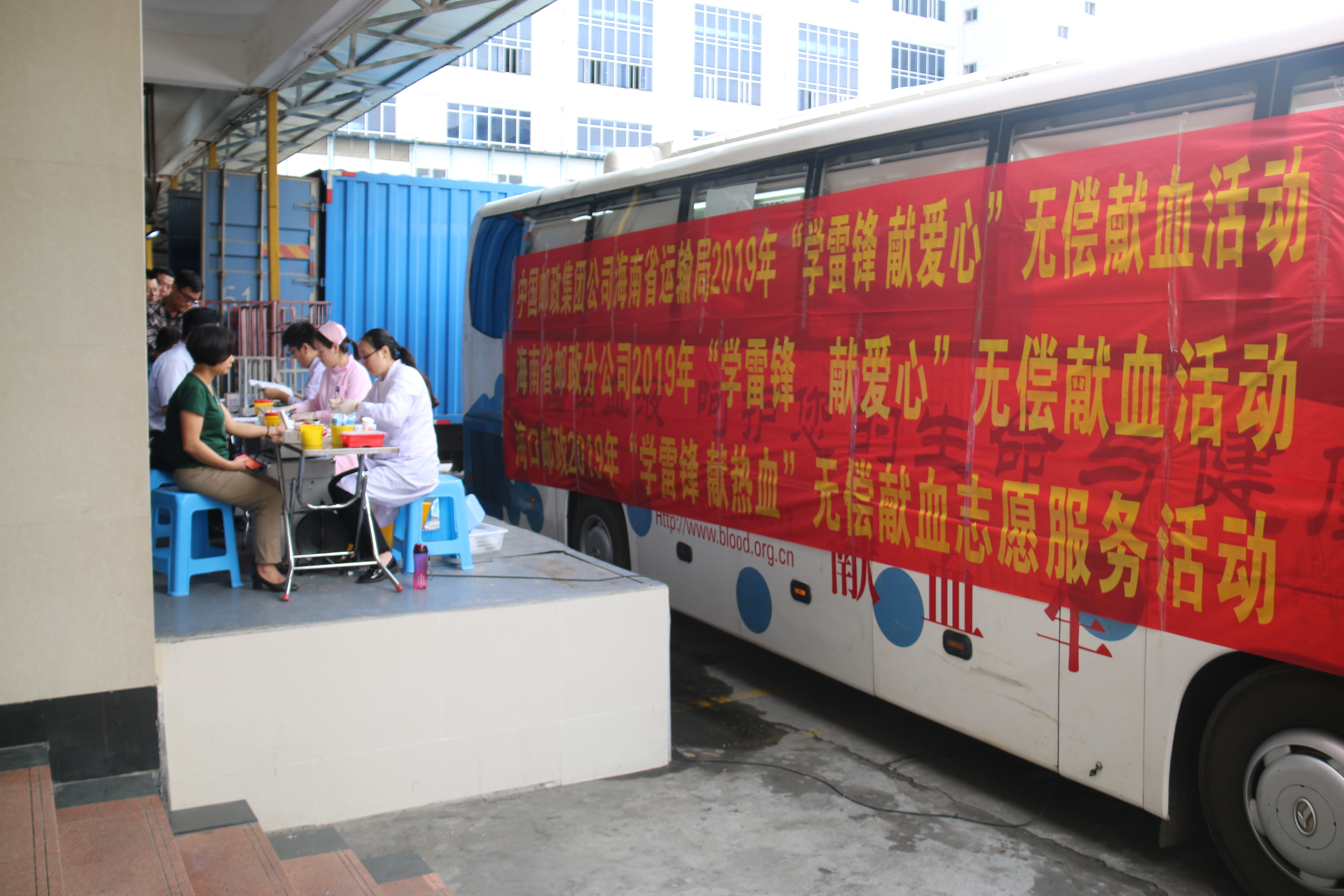3月5日是“雷锋日”,早上八点,两辆无偿献血车分别驶入海口邮区中心局和邮储银行海南省分行,许多员工已经在有序等候,积极参与无偿献血活动,以实际行动践行雷锋精神。