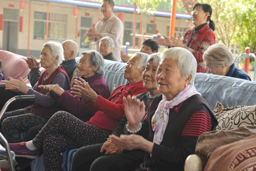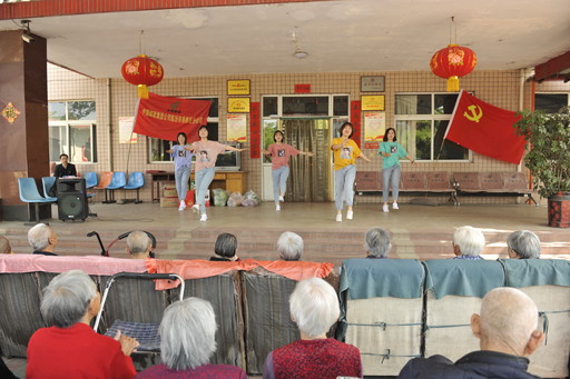 台上充满青春活力的歌舞,与台下老人们的笑声、掌声,显得那么和谐。