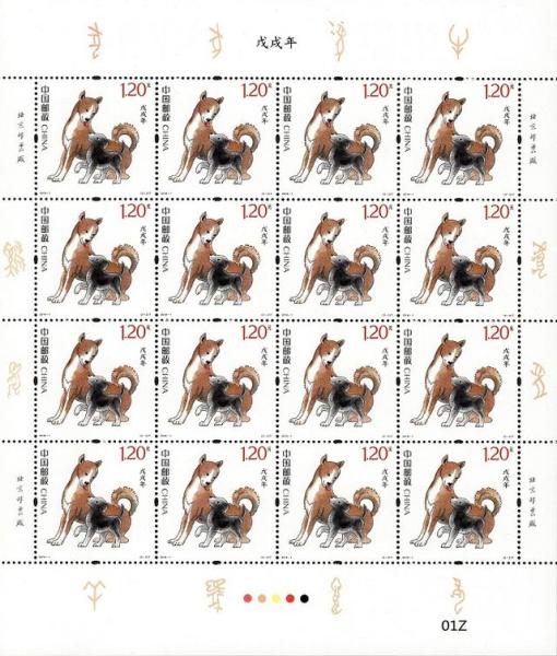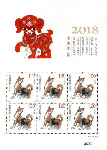 中国邮政2018年1月5日发行《戊戌年》特种邮票1套2枚,小本票1本。