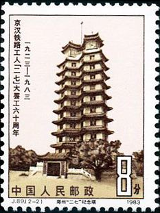 1923年2月1日,京汉铁路工人在中国共产党的领导下,在郑州举行京汉铁路工人总工会成立大会。北洋军阀吴佩孚派军警封锁了大会会场。为了抗议吴佩孚的武力阻挠,总工会决定举行总罢工。2月4日,总罢工开始,全线各站工人一致行动,不到三小时,客车、货车、军车一律停驶,长达一千余公里的铁路顿陷瘫痪。武汉各工团代表和工人一万余人走上街头,高唱“军阀手中铁,工人肢上血。颈可折,肢可裂,奋斗的精神不消灭;劳苦的群众们,快团结起来”;高呼“打倒军阀”等口号,举行了声势浩大的示威游行。2月7日,吴佩孚在外国势力支持下,在江岸、郑州、长辛店等地对工人进行血腥镇压,工人被杀四十人,伤数百人,造成“二七惨案”。罢工坚持到2月9日结束。这次罢工是中国工人阶级在中国共产党领导下,为了反对帝国主义和军阀的压迫,争取人权、自由等权利而进行的一次震惊中外的政治大罢工。为了纪念“二七”大罢工60周年,邮电部特发行这套纪念邮票。