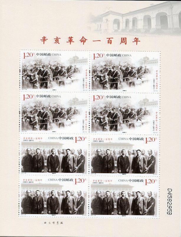 中国邮政2011年10月10日发行《辛亥革命一百周年》纪念邮票1套2枚,小型张1枚。