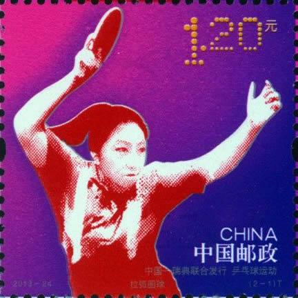 中国邮政2013年9月27日发行《乒乓球运动》特种邮票1套2枚(与瑞典联合发行)。