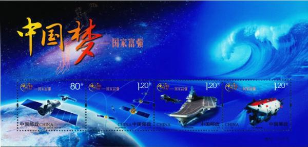 中国邮政2013年9月29日发行《中国梦—国家富强》特种邮票1套4枚,小全张1枚。
