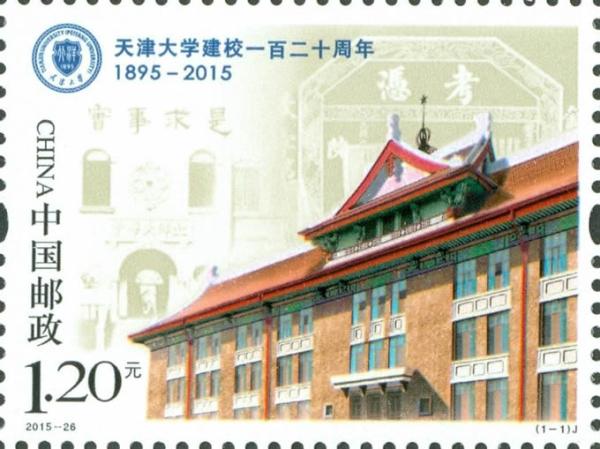 中国邮政2015年10月2日发行《天津大学建校一百二十周年》纪念邮票1套1枚。