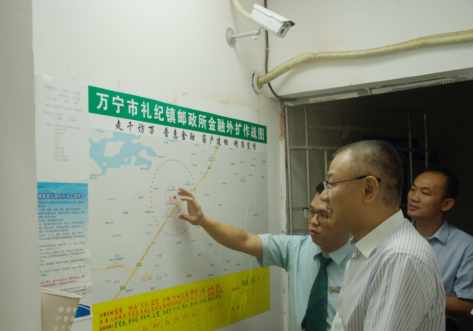 石纯斌在万宁礼纪支局了解金融外拓情况