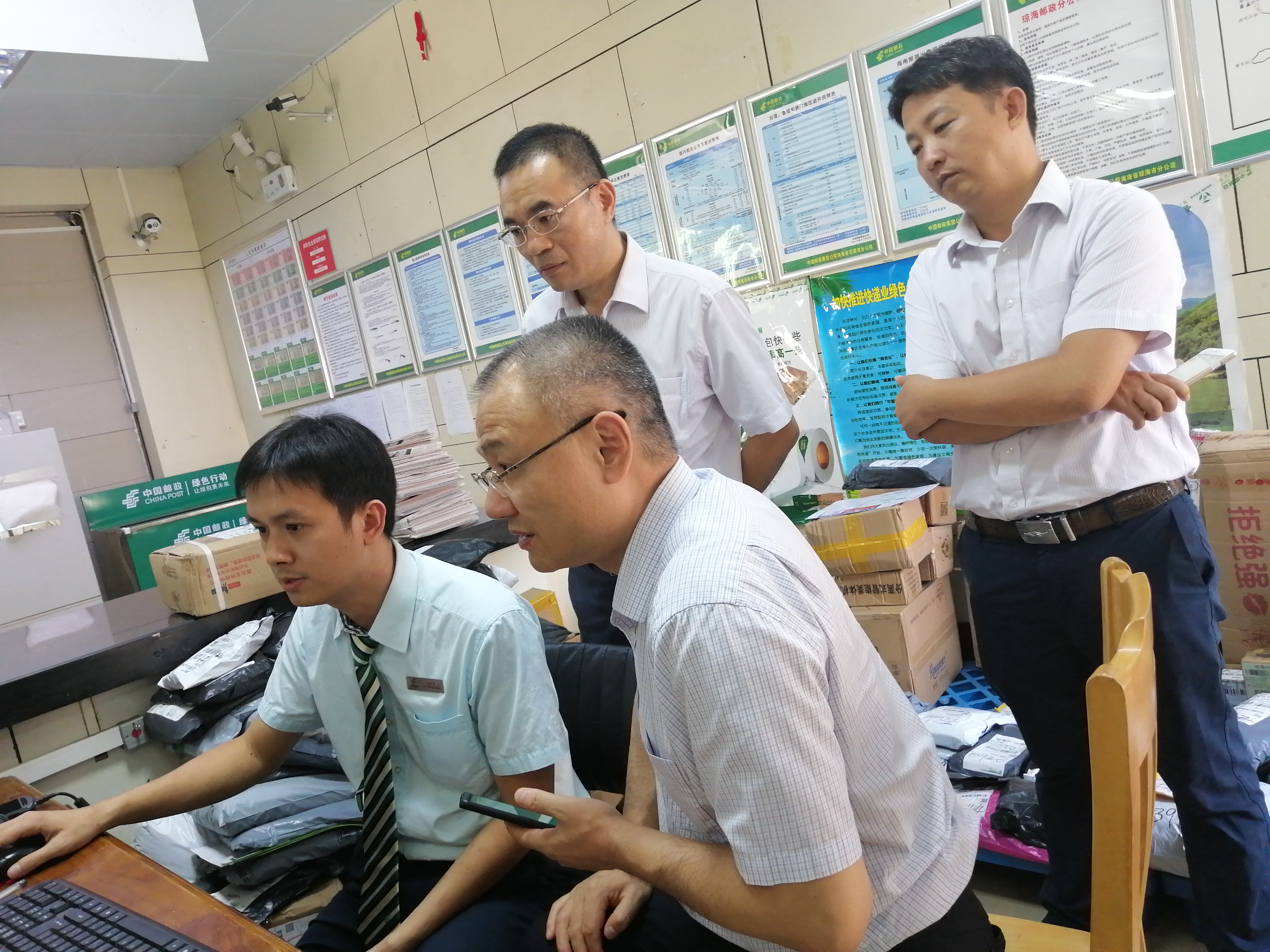 石纯斌在琼海潭门支局查看邮件验视情况