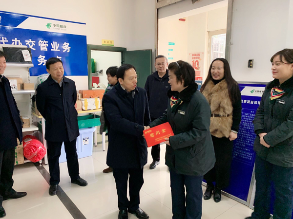 1月14日下午,省分公司纪委刘鸿书记、监察室胡红军主任、工会王燕部长一行人,来到铜陵市分公司慰问了困难员工、退休老党员,慰问了在工作岗位上的全国劳动模范方小华、省五一劳动奖章获得者许道文,带来了省分公司党委的节日亲切问候。慰问中,刘鸿书记询问了官桥支局业务发展情况,并鼓励员工抓好旺季营销,争力向高点突破。在邮件外理中心和投递部门,详细了解了进出口邮件处理时限,询问了投递人员外部揽投、车辆使用、归班时间,并叮嘱春节期间要注意生产安全和外勤投递安全。在“劳模创新工作室",听取了以劳模创新工作室为平台,通过“窗口服务园地"、“投递服务园地",开展普惠金融进万家、“爱心邮路"创新话动,在履行普遍服务,延伸服务方扩大邮政影响力,提升邮政品牌的介绍。刘鸿书记听了介绍后要求劳模要继续发挥好劳模效应,弘扬工匠?精神,发挥先进引领,传播好正能量。在退休老党员家中,刘书记询问了退休职工生活及健康状况,感谢退休职工为邮政所做的贡献和对当下邮政的关切,并祝愿老职工晚年生活愉快。