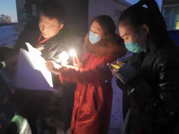 图为伊通邮政党员先锋队凌晨开展入户调查