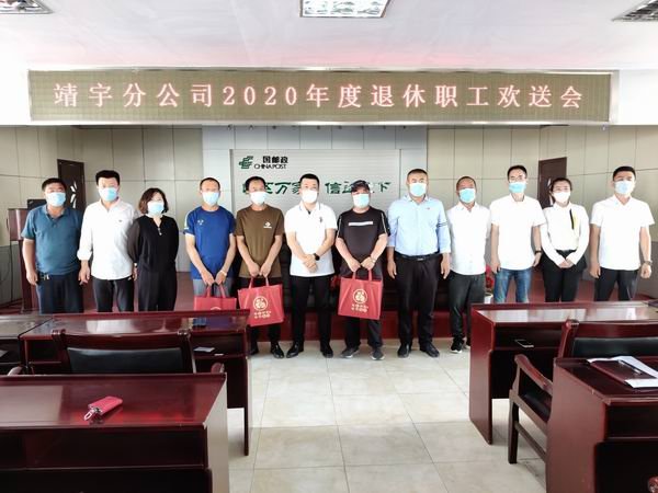 6月14日下午,靖宇县分公司利用周末休息时间,为即将退休的三位老同志举行了2020年退休职工欢送会。靖宇县分公司总经理段久亮及各部门职工代表参加欢送会。