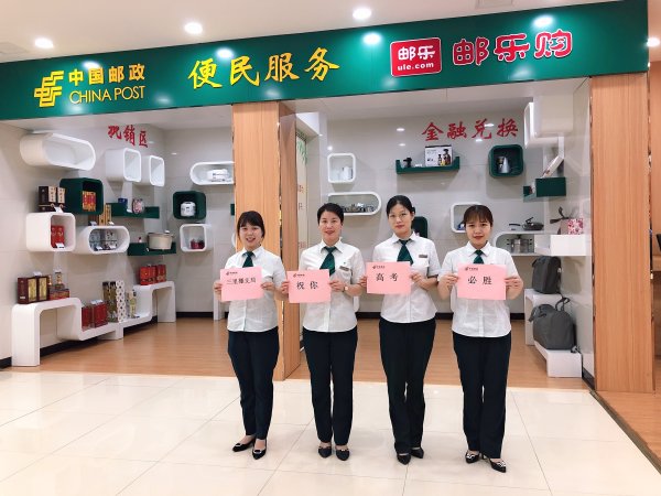 孝南区分公司三里棚支局积极践行社会责任,在网点内和考点周边设立高考服务点,为考生加油鼓劲,为家长提供躲雨和休息的场地。服务点设立高考加油区、手机充电区和物品补给区,免费为高考学生和家长提供邮政logo的雨具、鞋套、纸巾、饮用水、打印复印一体机、wifi以及符合考试要求的2B铅笔和黑色签字笔。一句简单的加油、一张双手递上的纸巾、一把及时撑起的雨伞······无不体现三里棚支局助考服务中无微不至的关爱。