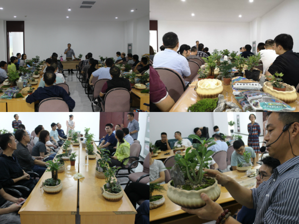 大家动起手来,将一棵棵植物轻轻放入盆中,培上土,再加上石块、石子、青苔巧妙点缀。“阳光海滩”、“悠悠古原”、“雅致别院”、“狂野草原”、“乱石山野”,一件件生机勃发、妙趣横生的盆栽作品被巧手制成。 为喜迎“国庆”“中秋”双节,活跃节日气氛,增添生活情趣,省信息技术局工会请来园艺老师,为大家举办了这场别开生面的盆栽艺术沙龙会。老师现场讲解植物特性及养护要点,演示盆栽技巧,在大家制作完成后,还对盆栽作品一一进行点评。活动后大家纷纷表示收获满满,意犹未尽,活动实用而有趣,既学习了盆栽技术,又提高了审美情趣,特别是动手环节,构思、组合、搭配、装饰、定型,亲手DIY真是很过瘾。