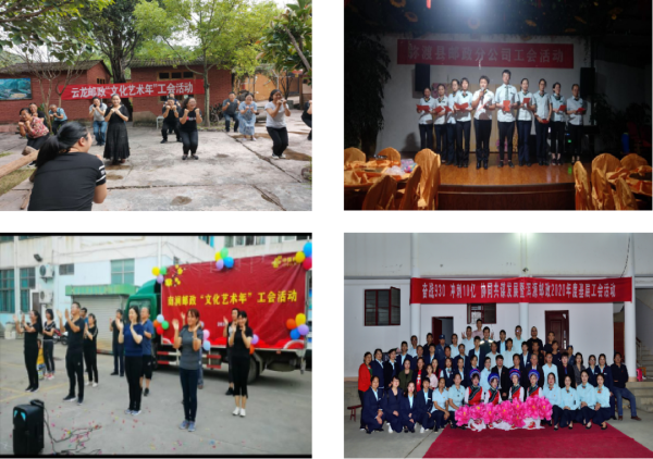 云龙县邮政工会动员职工干部树立“健康第一、崇尚运动”意识,倡导大家热爱生活、科学健身,结合职工长期缺乏煅炼的实际,组织开展“工间操”学习主题工会活动;南涧、弥渡县邮政工会为职工提供展示才艺平台面,组织开展了职工团队+个人才艺展示、团队协作配合及火爆小游戏等主题工会活动;巍山、洱源县邮政工会则开展厨艺比拼、才艺展示等主题工会活动。