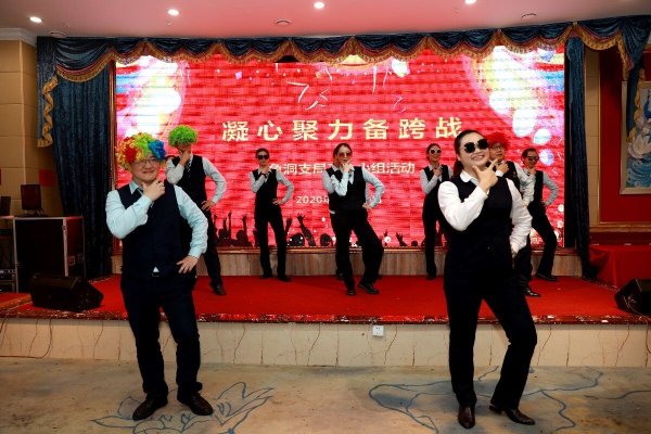 活动的开始,在支局长刘礼媛的号召下,以网点为单位,喊出了对跨年战役的口号,充分体现大家迎接跨战、战胜目标、获取胜利的信心和决心。趣味活动“你比我猜”、 才艺展示独唱《青藏高原》、舞蹈《我是最靓的仔》等节目活动中,员工展现出积极向上、奋进、健康的精神风貌,给大家带来欢声和笑语。