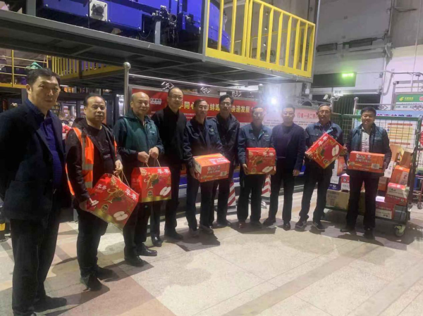 11月11日晚,市分公司总经理许峰、副总经理尹松携综合办主任王巍、人力部主任罗军在“双11”旺季生产如火如荼进行时,来到中心局及新投产的二场地进行慰问。期间,许总将精心准备的慰问品一一交到一线员工手中。许总强调:1、蚌埠邮区中心局作为皖北邮区枢纽,一定要发挥带头作用,做好旺季生产的各项工作;2、在保障好生产的同时,要严格按照疫情防控要求,做好个人防护,确保疫情“零发生”;3、旺季生产过程中,作业时间长、作业强度大,一定要做好人员、设备的安全防护,确保安全生产。最后,许总鼓励大家要凝心聚力、坚定信心,打赢旺季生产这场没有硝烟的战役。