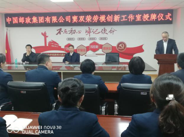 11月12日,窦双荣劳模创新工作室升级为集团公司劳模创新工作室授牌仪式在天水市分公司四楼会议室隆重举行。省分公司领导郭雨声为其现场授牌,天水市分公司领导和工会主席,麦积区分公司领导及相关部门负责人,窦双荣劳模创新工作室团队全体人员和部分网点负责人参加了授牌仪式,授牌仪式由天水市分公司工会主席胡燕凡主持。