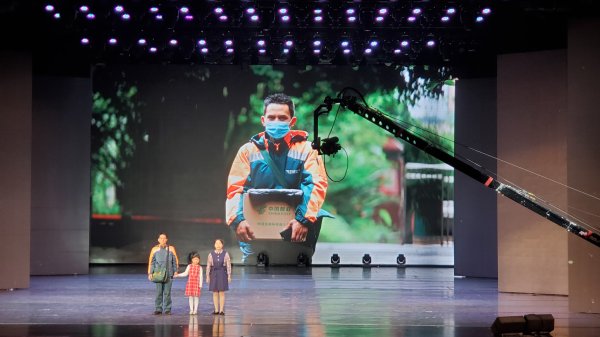 11月17日下午,重庆市第三届家庭诵读大赛“阅读新时代,书香润万家”家庭阅读展示活动在重庆市群众艺术馆举行。重庆市江北分公司投递员陈道发家庭参与比赛,现场诵读《冲锋的信鸽》,表达抗疫期间邮政人舍小家为大家的坚守与奉献,斩获一等奖。