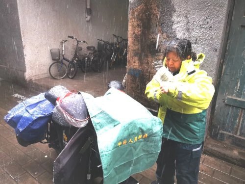 《北京日报》报道了朝阳区投递员徐萍的暖心举动:初冬的雪花落在地上瞬间融化,造成了道路湿滑,伴随着气温下降,给邮政外勤工作带来了一定影响。朝阳邮政水碓子支局的投递员徐萍又使上了她的“绝招”——把信件和报纸揣进怀里,顶着一头的雪花,三步并作两步,快速地跑进居民楼。“投递路上因为有防雨布不用害怕报纸淋湿,就是从停车到单元门口的那几步路,报纸和信件拿在手里没遮没挡的,我就把它们揣进怀里,这样就万无一失了。”每一次雨雪天气,徐萍都是这么干的,当用户从她手里接过邮件或报纸时,还带着她暖暖的体温。(北京邮政工会)