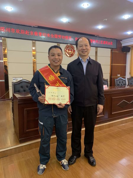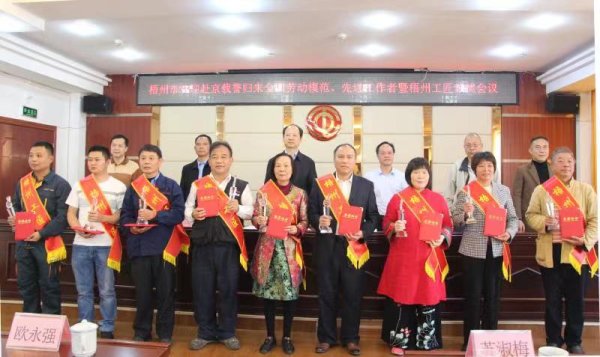 为弘扬劳模精神、劳动精神、工匠精神,11月26日下午,2020年“梧州工匠”颁奖会议在梧州市总工会12楼大会议室隆重举行。梧州市邮政分公司寄递事业部国际快件中心营业部朱哲获表彰。颁奖仪式结束,市人大常委会副主任、市总工会主席徐远洲,市总工会党组书记、常务副主席谢善高,梧州市总工会副主席李灿培对朱哲获得表彰表示祝贺并合影留念。