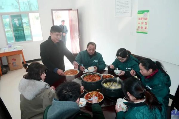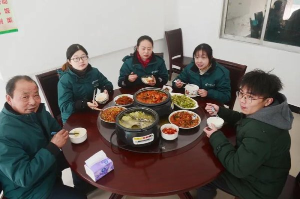 看到大家拼命工作的状态,作为支局经理,项顺成认为必须为员工做点什么。在项顺成的提议下,福田支局旺季生产期间每月给小食堂增加500元补贴,让辛苦了一天的员工晚上能“加鸡腿”。在湖北,一进腊月,腊鱼腊肉就是家家户户餐桌上必不可少的一道菜,支局小食堂也为员工安排上了。热气腾腾的黄颡鱼火锅、鸭子烧胡萝卜,湖区特色的鲊辣椒糊小鱼,还有蒸腊鱼、时令蔬菜、鸡蛋汤……小食堂的丰盛午餐,让员工们有了家的感觉。