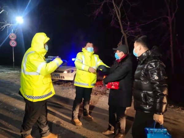 2021年1月20日晚,碾子山区委常委、宣传部长亓光焱、文明办于洪波主任会同碾子山区邮政分公司的领导班子、办公室全程驱车65公里,总历时3个半小时,来到该区的五个边界卡口,为日夜奋战在抗疫一线的工作人员送去暖心的慰问。