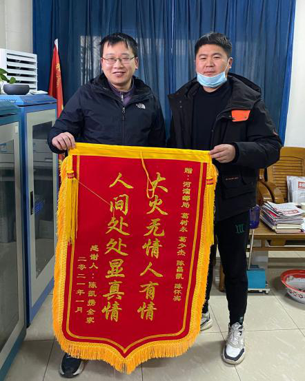 2021年1月18日下午,怀远县分公司综合办公室收到一面“大火无情人有情 人间处处显真情”的锦旗,感谢怀远县分公司四名员工,不顾个人安危,在火灾中奋力救出被大火围困的小女孩和老人。
