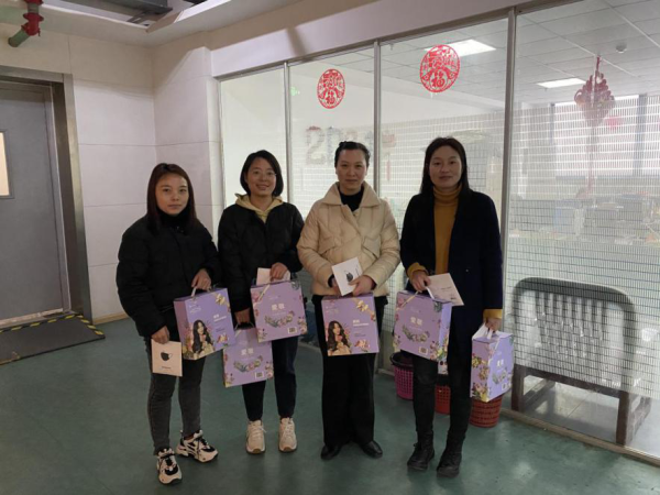 为丰富女职工业余生活,市邮政工会组织庆三八妇女节系列活动,向女职工送上节日的祝福。 市邮政工会精心挑选,针对女职工的喜好,订购美妆大礼包。礼包内含洗发水、护手霜等日常用品,同时还特别为女职工购买了防晒口罩,向每一位女职工送上节日的祝福,让大家能在美好的心情中迎接工作。