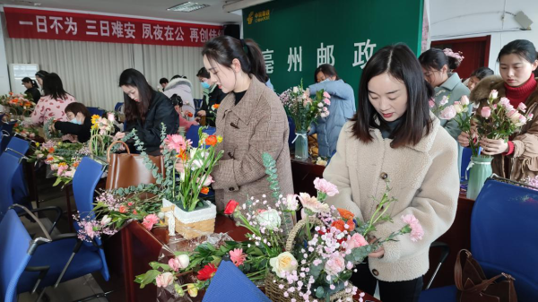 为庆祝“三八”妇女节,3月7日下午,亳州市邮政分公司结合省公司组织的“与花相伴 尽享欢愉”插花培训,精心组织了女职工插花比赛活动,让女职工在繁忙的工作之余得到放松。