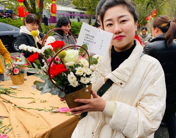 此次活动安排两个环节:1、全员参与游戏;2、女职工花艺插花。在女职工花艺插花环节,花艺老师先给大家介绍了一些常见花种、插花基本花型和技巧,并进行现场演示。职工们根据自己的喜好和老师的讲解,将手里的鲜花一个个插到花篮里,在花艺老师的指导下,经过1个多小时的精心摆弄,一个个精美的花篮在员工的手里完成。为让活动更有意义,拉近与大家的距离,分公司副总经理兼工会主席彭文锋根据参与人员的性格特点,书写了不同的祝福语,并亲手将祝福卡片送到员工手里,大家满心欢喜,每个人脸上都洋溢着幸福快乐的笑容,最后大家手捧着自己的作品合影留念,场面十分温馨。
