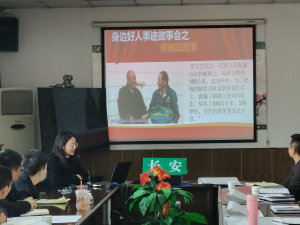 为持续贯彻落实“社会主义核心价值观主题实践教育”、“讲好邮政故事”,3月22日,西安邮政长安党委和工会联合组织开展了以“弘扬雷锋精神·做新时代楷模”为主题的身边好人及邮政故事宣讲,聆听、学习和感悟雷锋同志在其短暂而光辉的一生中所体现出来的爱国、爱党、爱社会主义的坚定信念,刻苦钻研科学理论的钉子精神,全心全意为人民服务的崇高品质,分享了雷锋同志的日记和人生名言。