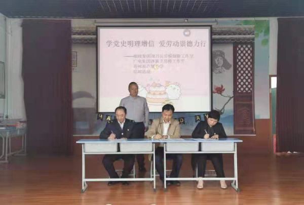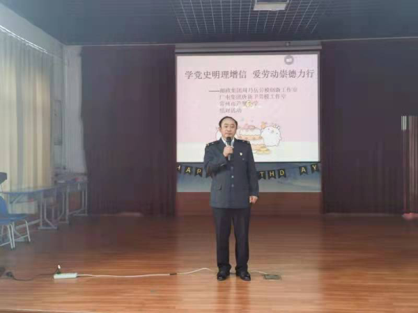 4月28日下午,“学党史明理增信、爱劳动崇德力行”劳模工作室结对进校园活动在常州市芦墅小学隆重举行,常州邮政周乃岳劳模工作室和常州广电唐新卫劳模工作室与芦墅小学共签结对共建协议。今后两个劳模工作室将积极发挥自身优势和特色,助力校方把劳动教育纳入人才培养全过程,让学生们树立劳动最光荣、劳动最美丽的观念,更加热爱劳动,尊重普通劳动者,形成正确的世界观、人生观、价值观。广电唐新卫劳模为大家播放了自己团队制作的党史教育微视频,带领师生们一起重温百年党史光辉历程;邮政公司周乃岳劳模结合自身经历谈了自己的入党初心以及如何成长为劳模的心路历程,对孩子们开展了劳动教育。两位劳模还为该校30位困难学子捐赠了装有学习用品的爱心包裹。
