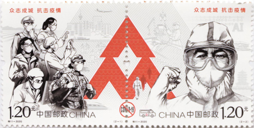 另外,十一届三中全会召开、奥林匹克运动会、中国梦——国家富强系列邮票等重大事件、题材,浓缩在一枚枚邮票中,让人眼前一亮。其中,中国邮政于2020年5月11日特别发行的《众志成城 抗击疫情》邮票1套2枚,采用连票形式,邮票图案中“众”字将两枚邮票紧密连接,寓意着面对突发重大公共卫生事件,在党中央坚强领导下,全国上下凝聚起众志成城、抗击疫情的强大力量。