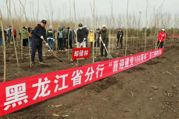 近年来,我行积极落实集团公司和总行绿色邮政建设行动相关部署,在做好义务植树等公益事业的同时,大力培养广大干部员工的生态文明理念,营造全行绿色环保的良好氛围,不断创新绿色金融产品和服务,支持绿色低碳发展,持续为建设美丽龙江贡献力量。
