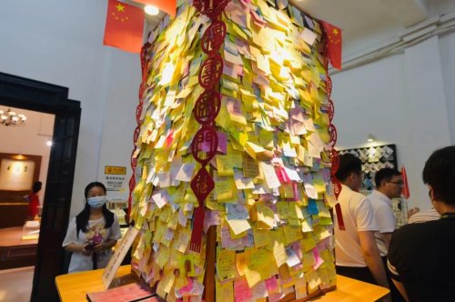 而在营业大厅左侧的集邮展台,许多紧跟潮流的地方特色个性化邮品满足着当地市民和外地游客收藏需求。位于大厅中央的纪念戳加盖台上还设置了寄语展板,上面密密麻麻地贴着人们对美好生活的寄托······