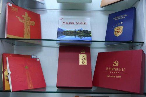 来到哈达铺红军长征纪念馆正门旁的哈达铺红色邮局,展柜上陈列的物品让人挑花了眼。不仅有哈达铺纪念明信片、大公报、党史党情图书等,还有宕昌县本地特产中药材、点心、香菇酱等产品。每天都有上百名游客到此,对关于长征题材的邮票、明信片和首日封等邮品产生了浓浓的兴趣。一名来自内蒙古的游客一进来就被展柜上的明信片吸引得移不开眼,他选购了一枚明信片,高兴地说道:“我要把明信片寄回去,留下这份珍贵的哈达铺记忆。”与此同时,主题邮局内一场线上直播活动正在如火如荼地进行中。