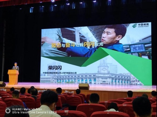 全国劳模柴闪闪(中国邮政集团公司上海市分公司邮区中心局邮件接发员)代表上海邮政参加报告会,作了题为《是努力与奋斗让我“闪闪”发光》的事迹宣讲。