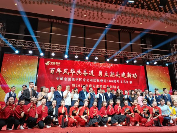 2021年5月25日,梁平邮政举行了以“百年风华共奋进,勇立潮头建新功”为主题的庆祝建党100周年文艺汇演暨2020年度先进模范表彰活动。百年风雨兼程,百年沧桑巨变,2021年是中国共产党成立100周年,是奋进“十四五”的第一年,也是区分公司夯实核心竞争力,推进高质量发展的关键之年。来至各条战线的员工们用富有时代气息、欢歌载舞的文艺节目热烈庆祝建党100周年,并评选出了一、二、三等奖;通过先进模范表彰活动,大力弘扬劳模精神、工匠精神,展现梁平邮政在改革发展中取得的成绩,展现梁邮人凝心聚力促发展的风采。