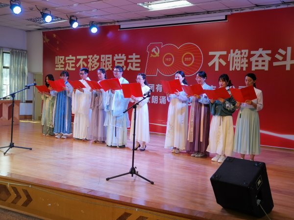 经过各工会精心策划,活动分两部分开展:先是选定10名职工身穿汉服,在市分公司八楼会议室进行诗歌朗诵,《屈原》《请把你的遗志交给我》《永远跟党走》,一首首不朽的诗篇,承载着对英雄们的无比崇敬和怀念。100年来,一代又一代中国共产党人顽强拼搏、不懈奋斗,抛头颅、洒热血,领导中华民族实现了从站起来、富起来、到强起来的伟大飞跃,职工们听得激情高涨!