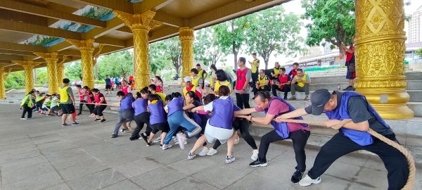 接着划分为四大组别,进行集体项目对决,首先开展的第一项便是珠行万里,队友排排站,U型槽紧密相连,脸上洋溢着团结一心、必胜的决心。两人三足游戏,男女步调一致,纷纷冲锋在前,场外阵阵加油声淹没了雨声。紧接着拉起了大跳绳,纷纷捕捉运动健将和身材瘦小人员,他们具有天然的跳跃优势,人员选拔完毕,哨声一响,按照顺序纷纷跳入绳中,全员到齐,咬紧牙关连跳10下方算是完成小组任务。拔河活动蓄势待发,两队已准备就绪,调动全身力气,劲往一处使,在阵阵掌声中中,红队一骑绝尘,摘得桂冠。