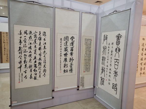 本次职工书画摄影展是河北邮政庆祝建党成立100周年的一项重要文化活动。活动得到了全省广大邮政职工的积极响应,尤其是来自基层一线的职工书法、美术爱好者,踊跃参与,积极创作。共展出作品195幅,包括行书、草书、楷书等书法作品59幅,美术作品47幅,摄影作品89幅,题材多样,内容丰富,真实记录了建党百年来河北邮政发生的巨大变化和邮政职工昂扬奋进的时代风采,表达了广大职工爱国爱党爱企的炙热情怀,生动展示了职工们积极投身企业高质量发展的伟大实践,唱响了“劳动最光荣、劳动最崇高、劳动最伟大、劳动最美丽”的时代主旋律。