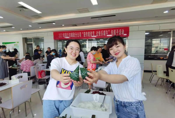 为迎接传统佳节,进一步丰富职工文化生活,市邮政工会于6月11日上午在职工食堂组织开展了包粽子活动,来自市分公司、市区分公司的100余名员工参加了本次活动。活动一开始,大家便热情高涨,积极参与,通过合理分工,捋粽叶、填糯米、装馅料、压紧实、扎捆,相互交流心得,不一会儿就呈现出三角形、牛角形等各式各样的漂亮粽子,大家手捧着亲手包出来的粽子,脸上绽放着幸福的笑容。温馨和谐的气氛,营造了浓浓的“家”的味道,使大家深深感受到企业大家庭的温暖,进一步增强了广大员工的归属感。(河南省邮政工会)