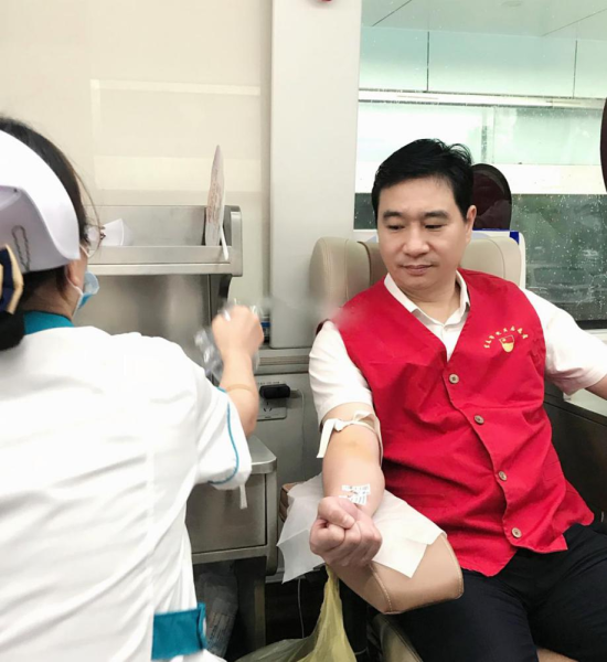 市分公司党委书记、总经理苏高峰带头参加了无偿献血活动。在献血车上,他向工作人员咨询献血注意事项后,有序完成了填表、量血压、测血型等准备工作,开始接受采血。“今天是个特殊的日子,是建党100周年纪念日,作为一名党员领导干部,带头参与无偿献血这样一项利人利己的社会公益活动,用特殊方式纪念特殊日子,感觉很有意义!”苏高峰说。