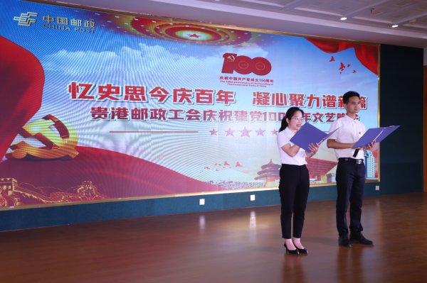 为庆祝中国共产党成立100周年,进一步激发广大邮政员工活力,增强广大党员、团员、青年员工的光荣感、使命感,引导广大党员干部更加热爱党、拥护党,展示贵港邮政员工奋发向上的精神面貌,贵港市邮政分公司工会由于7月2日晚,以“忆史思今庆百年 凝心聚力谱新篇”为主题的庆祝中国共产党成立100周年文艺晚会在市分公司举行。