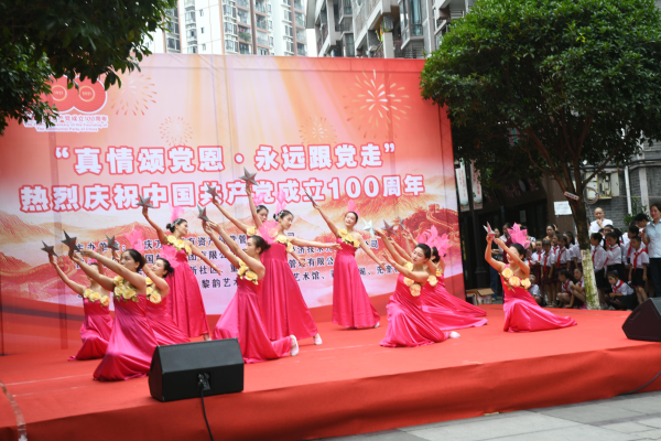 在中国共产党成立一百周年之际,6月29日上午,由国资公司主办,万盛邮政分公司、万新社区、宽达物业协办的“真情颂党恩·永远跟党走”热烈庆祝中国共产党成立100周年文艺汇演活动在万盛老街精彩举行,万盛邮政工会主席彭文锋,副总经理周兵出席了活动。并对参与此次活动的员工给予鼓励,让员工充分展示邮政人的良好职业道德风采和奋发向上的精神风貌。