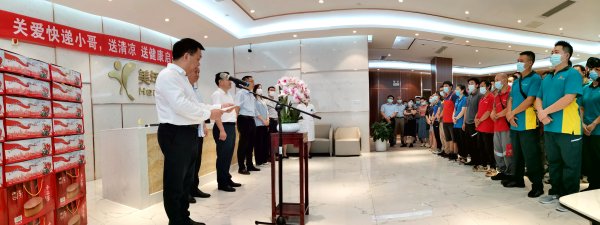 “关爱快递小哥,送清凉、送健康”由湖北省总工会、省邮政管理局、武汉市邮政管理局、湖北省快递协会、武汉市快递协会联合组织活动,安排快递企业的优秀快递员工免费体检,并对一线快递员工进行高温慰问。