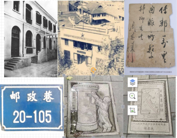 位于路口的福绥路邮政支局门前马路上有着浓浓的邮文化,地面上分别铺着“宜昌第一个邮筒”“一八九四年发行的宜昌商埠邮票银叁钱”“宜昌第一部电话”和“福绥路的来历”的大理石浮雕。