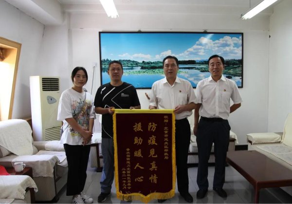 9月3日,延庆区香水园街道川北西社区居委会向延庆邮政送来印有“防疫见真情、援助暖人心”的锦旗,对延庆区分公司在疫情防控期间的辛勤付出与服务表示感谢。