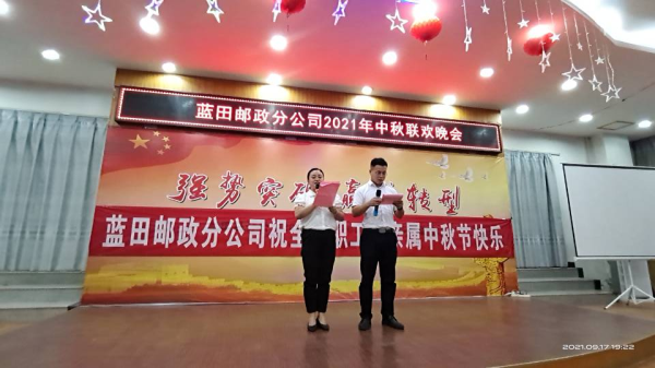 海上生明月,天涯共此时,值中秋佳节来临之际,蓝田邮政于2021年9月17日举办职工联欢晚会,共庆中秋佳节,活动丰富多彩,趣味盎然。音乐声、欢乐声、鼓掌声声声悦耳,跳舞样、朗诵样、唱歌样样样可亲,全场营造出欢乐祥和的节日氛围。通过中秋活动的举办,缓解职工经营压力,增强职工旺季生产的动力,进一步提升企业团队形象,凝聚职工士气,唱响主旋律。