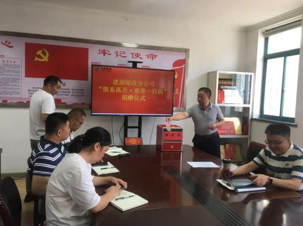 9月7日上午,建湖邮政工会积极响应地方号召,组织开展2021年“情系孤困?慈善一日捐”活动。建湖邮政干部职工积极参与、奉献爱心,通过线上扫码的形式踊跃捐款,当日累计筹集5300元,所有款项第一时间按照要求汇至江苏省慈善总会。