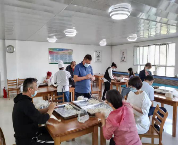 食堂师傅准备好食材后,各部门人员迅速的做完手中的工作,来到员工食堂,大显身手,大盆的肉馅和饺子皮摆在中间,活动现场欢声笑语,大家包的饺子有大个馅多的,也有小巧玲珑的,饺子的外形更是花样迭出,有长得像玫瑰的、像麦穗的,有月牙形的,也有三角形的,整个活动过程和谐、温馨、融洽、欢乐,很快一盘盘美观饱满的饺子出炉了,大家共同分享了皮薄馅厚的饺子。分公司党委书记巴依尔图、工会主席薛永峰也参与了此次活动。
