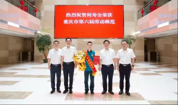 10月9日上午,重庆市第六届劳动模范和先进工作者表彰大会在重庆人民大厦会堂召开。重庆邮政渝中区分公司揽投员何寿全被评为重庆市第六届劳动模范并出席会议。市分公司党委书记、总经理周新峰,副总经理、工会主席熊岗在山顶总部接见了载誉归来的何寿全,并与他合影留念。